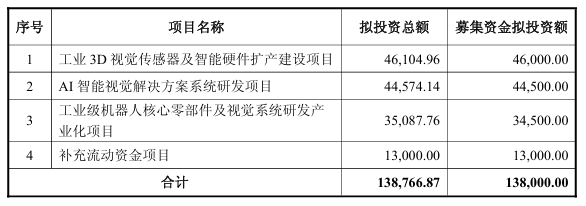 13.8亿募资锚定三大核心方向公告显示,公司计划向不特定对象发行可转债,拟募集资金总额不超过13.8亿元。用于工业3D视觉传感器及智能硬件扩产建设项目、AI智能视觉解决方案系统研发项目、工业级机器人核心零部件及视觉系统研发产业化项目以及补充流动资金项目。