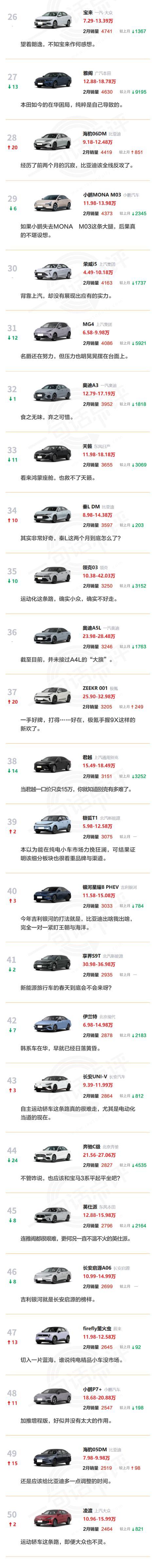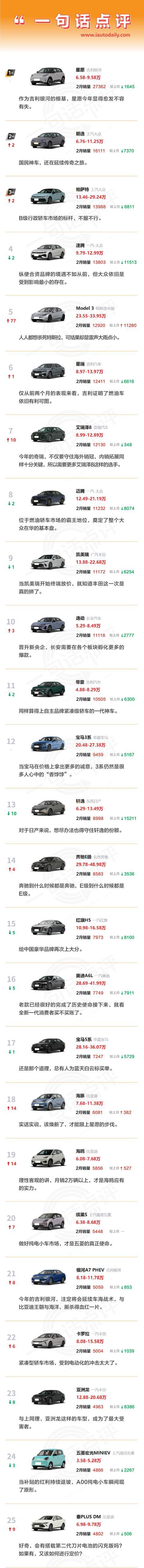 也恰恰基于这样的背景,望向2月轿车销量榜单,以大众、丰田为首的品牌,依旧能够凭借常规燃油乘用车祭出不错的输出。甚至前十名中,占据了8个席位。