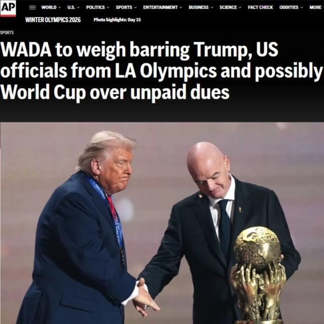 直播吧03月14日讯 据美联社报道,世界反兴奋剂机构正考虑禁止美国总统特朗普以及美国政府官员出席2028年洛杉矶奥运会,这一举措也可能对今夏的世界杯产生影响。