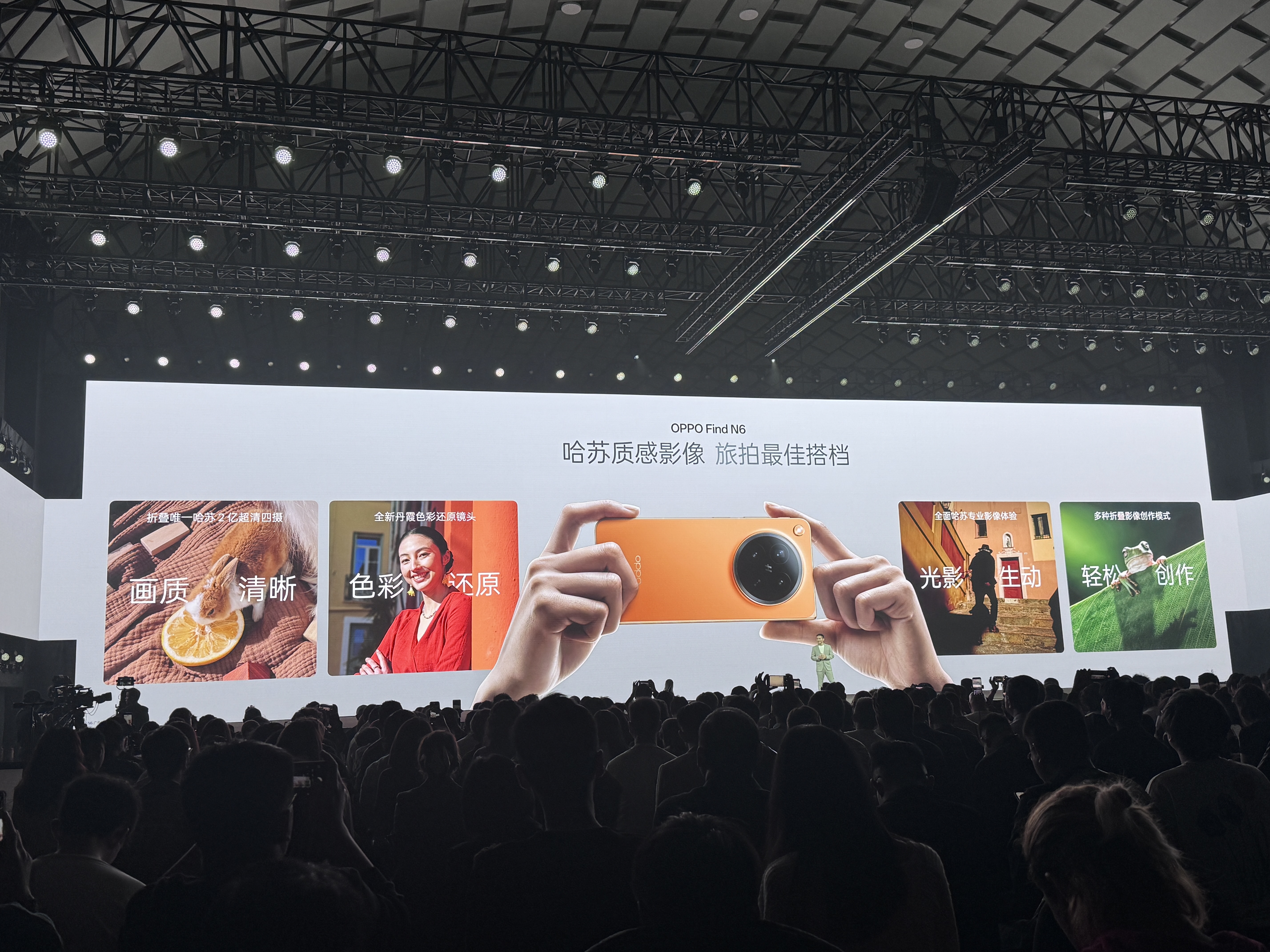 影像上,OPPO Find N6 搭载「哈苏 2 亿超清四摄」影像系统。哈苏 2 亿超清主摄搭配 OPPO 自研 LUMO 超像素引擎,带来清晰的画质表现。5000 万像素潜望长焦镜头支持最近 10 cm 长焦微距。搭载丹霞色彩还原镜头,更好还原复杂场景下的色彩。支持哈苏大师模式、哈苏 XPAN 宽幅模式等哈苏体验。