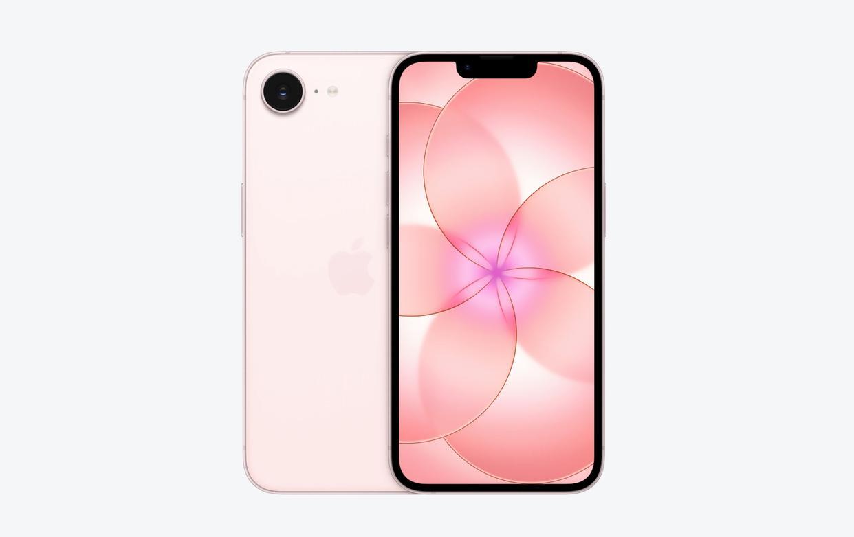 外观几乎没变,还是祖传的 6.1 英寸 OLED 刘海屏,连「灵动岛」都不愿意给。相较前代唯一不同,就是新增了一款「浅粉色」配色。